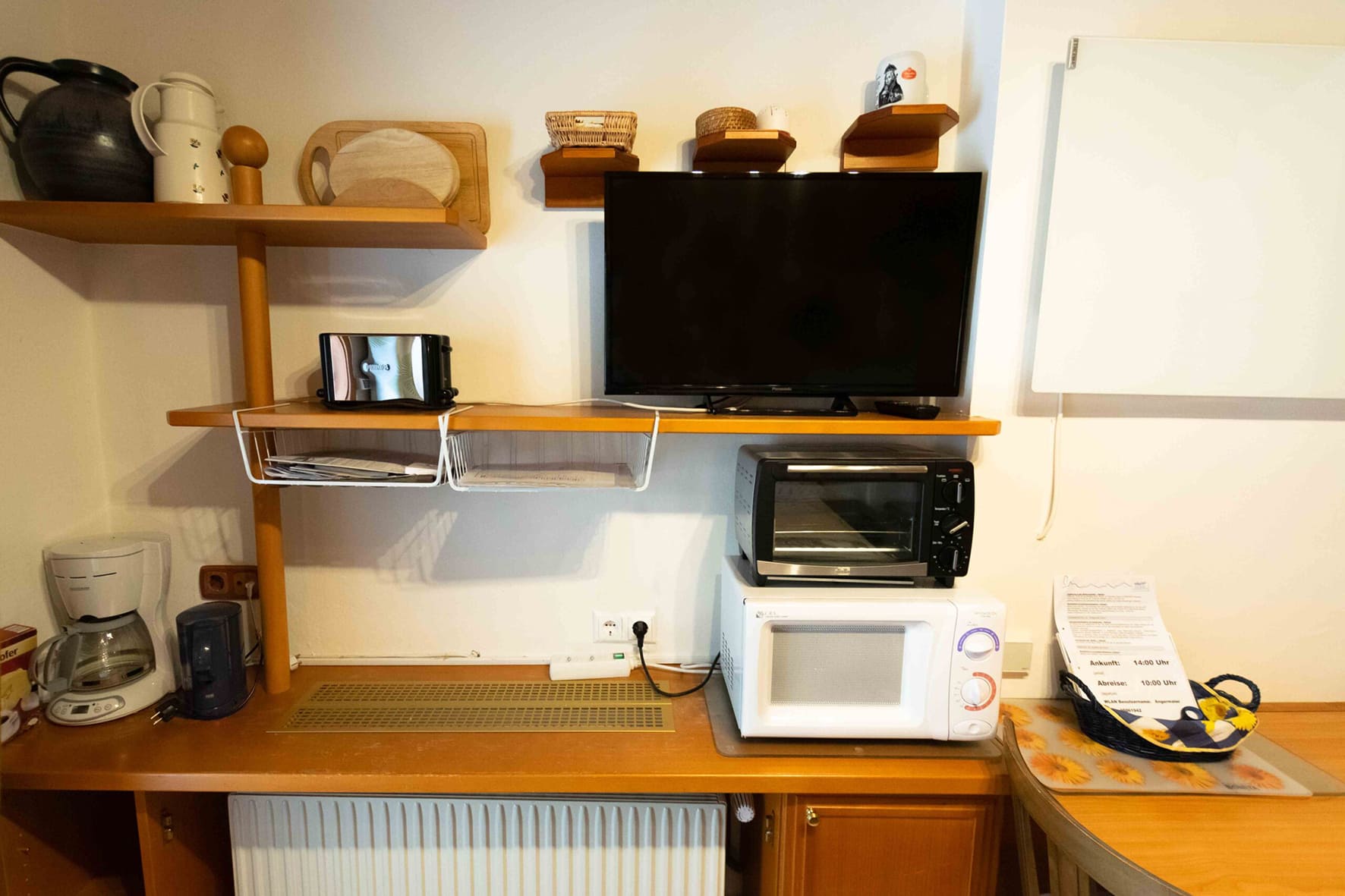 TV sat., mikrovlnka, rýchlovarná kanvica, kávovar, hriankovač, spravidla fén; len quadrilo a quintilo: trúba, umývačka, práčka