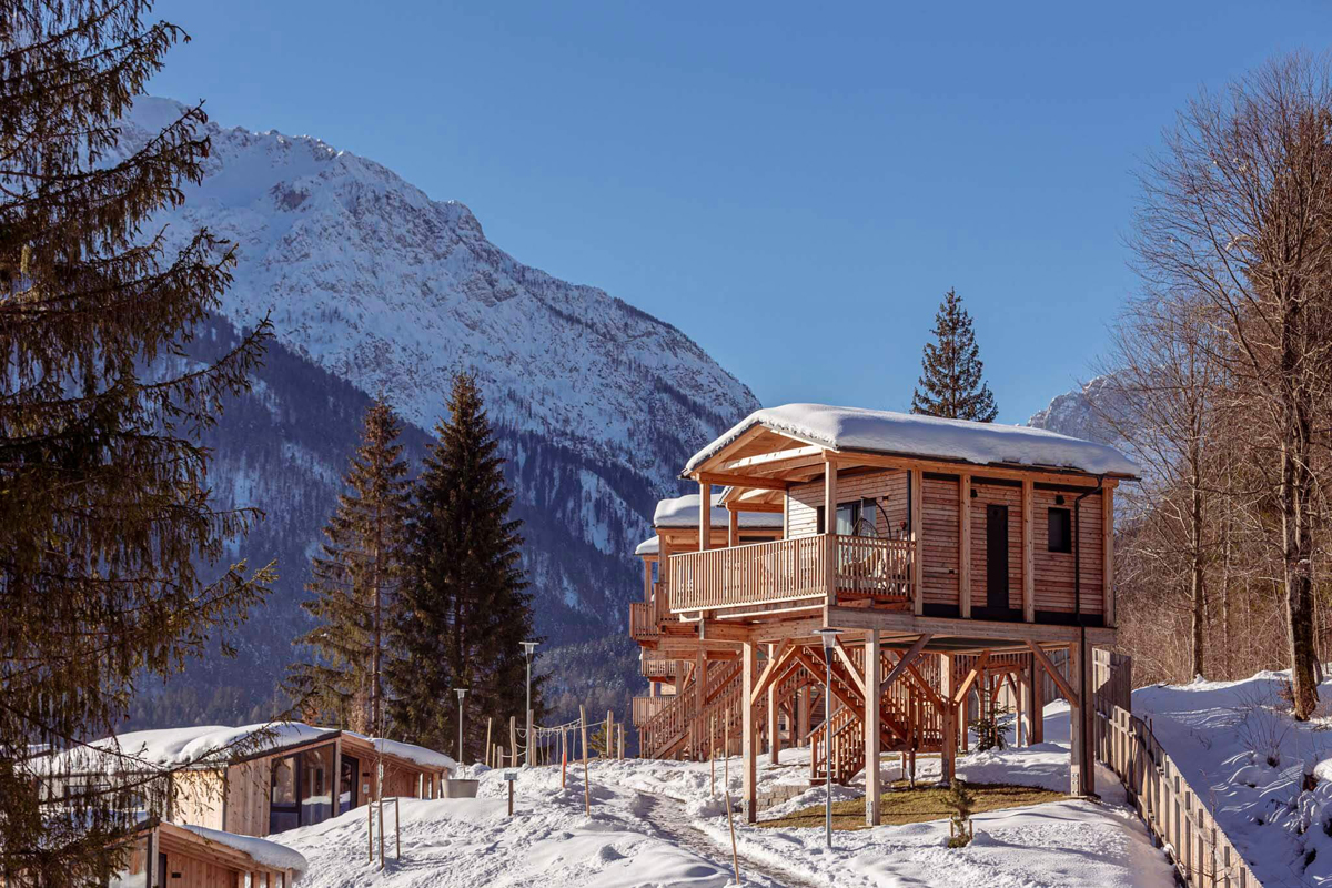 prázdninová dedinka s chaletmi a netradičnými apartmánmi na vysokých pilieroch s úchvatným výhľadom na okolitú krajinu