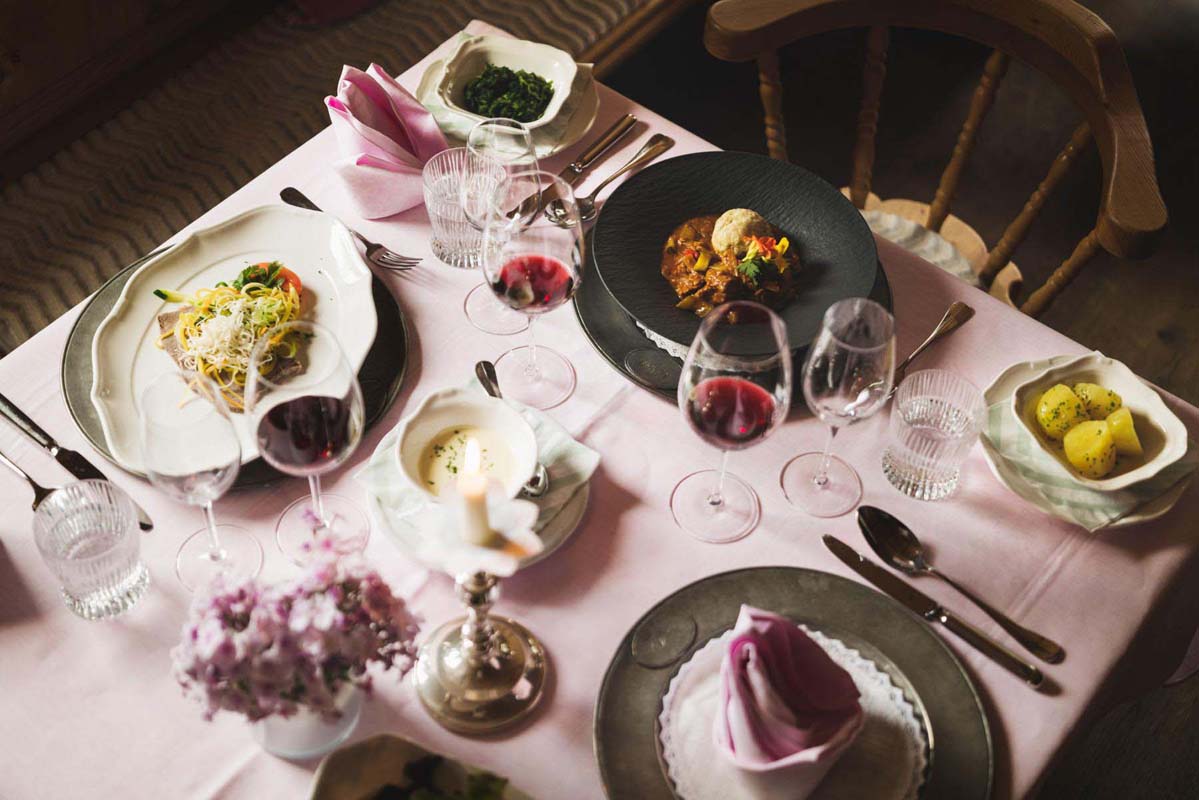 večera - servírované 5chodové menu s výberom hlavného jedla s prílohou, predjedlá, šaláty, syry a dezerty formou bufetu, nápoje za poplatok