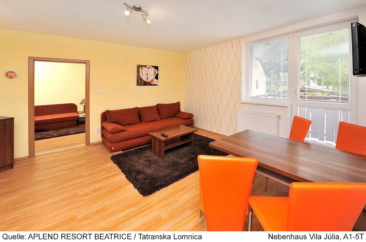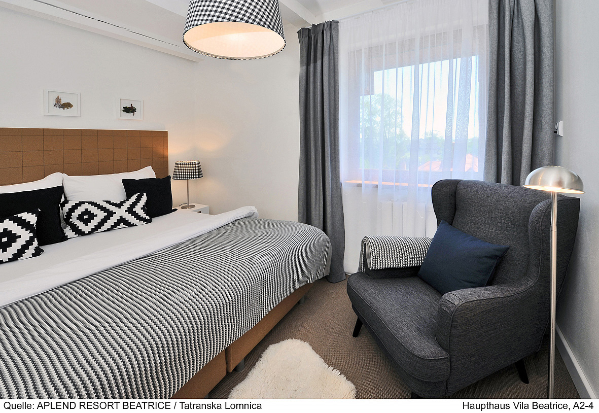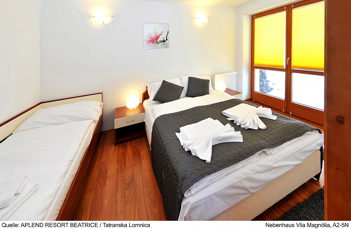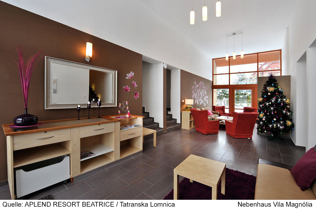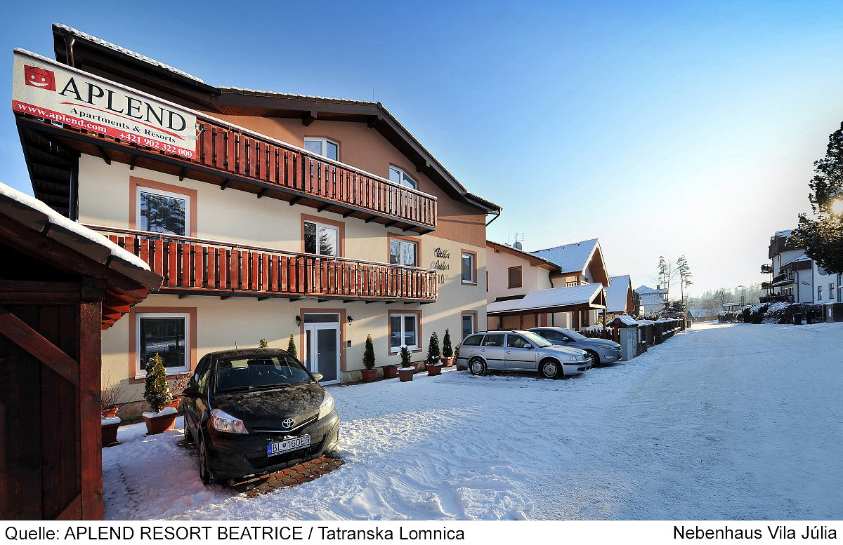 upresnenie - Vila Beatrice pozostáva z hlavnej budovy Vila Beatrice (typ A) s recepciou a raňajkovou miestnosťou a z dvoch dependancií – Vila Júlia (typ B) a Vila Magnólia (typ C), ktoré sa nachádzajú vo vzdialenosti najviac 300 metrov od hlavnej budovy