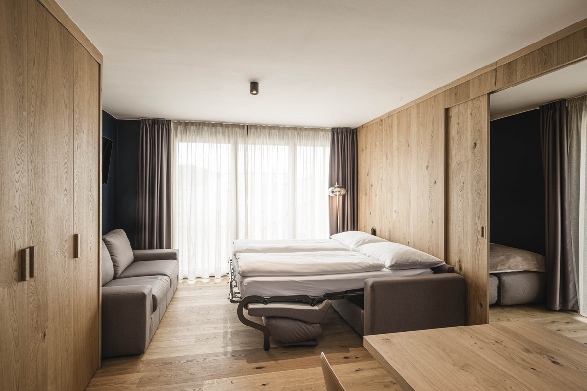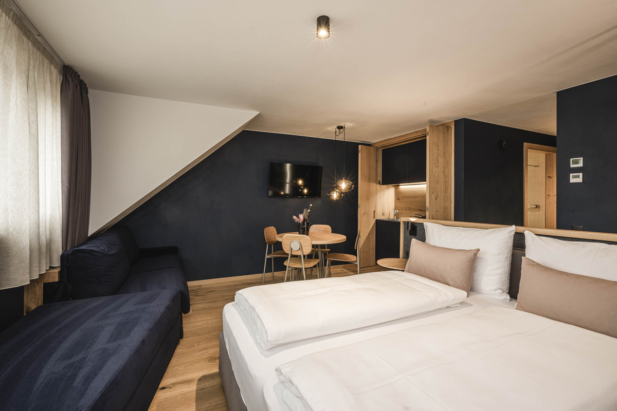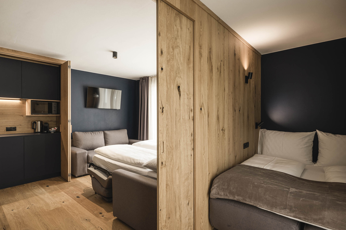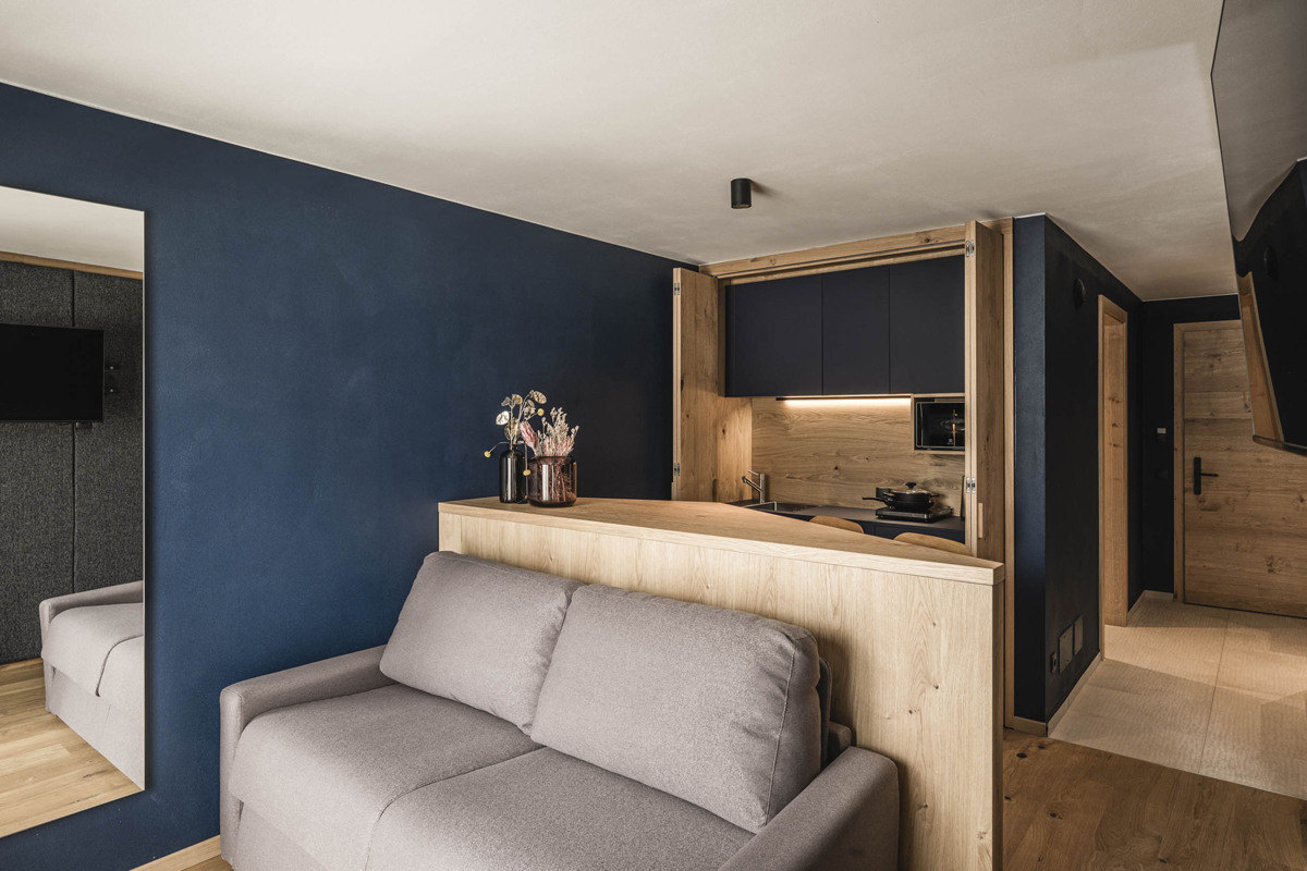 mono 2+1 - 34 až 38 m² – obývacia izba s kuchynským kútom, manželskou posteľou a rozkladacím gaučom pre 1 osobu, sociálne zariadenie; maximálna obsaditeľnosť apartmánu sú 2 dospelé osoby a 1 dieťa do nedovŕšených 14 rokov