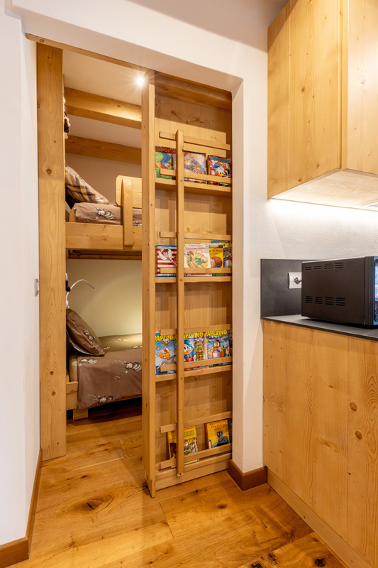 Trilo 6 Viola - 59 m² - 1 spálňa s manželskou posteľou, 1 izba s poschodovou posteľou, obývacia izba s kuchynským kútom a rozkladacím gaučom pre 2 osoby, sociálne zariadenie so sprchou, balkón