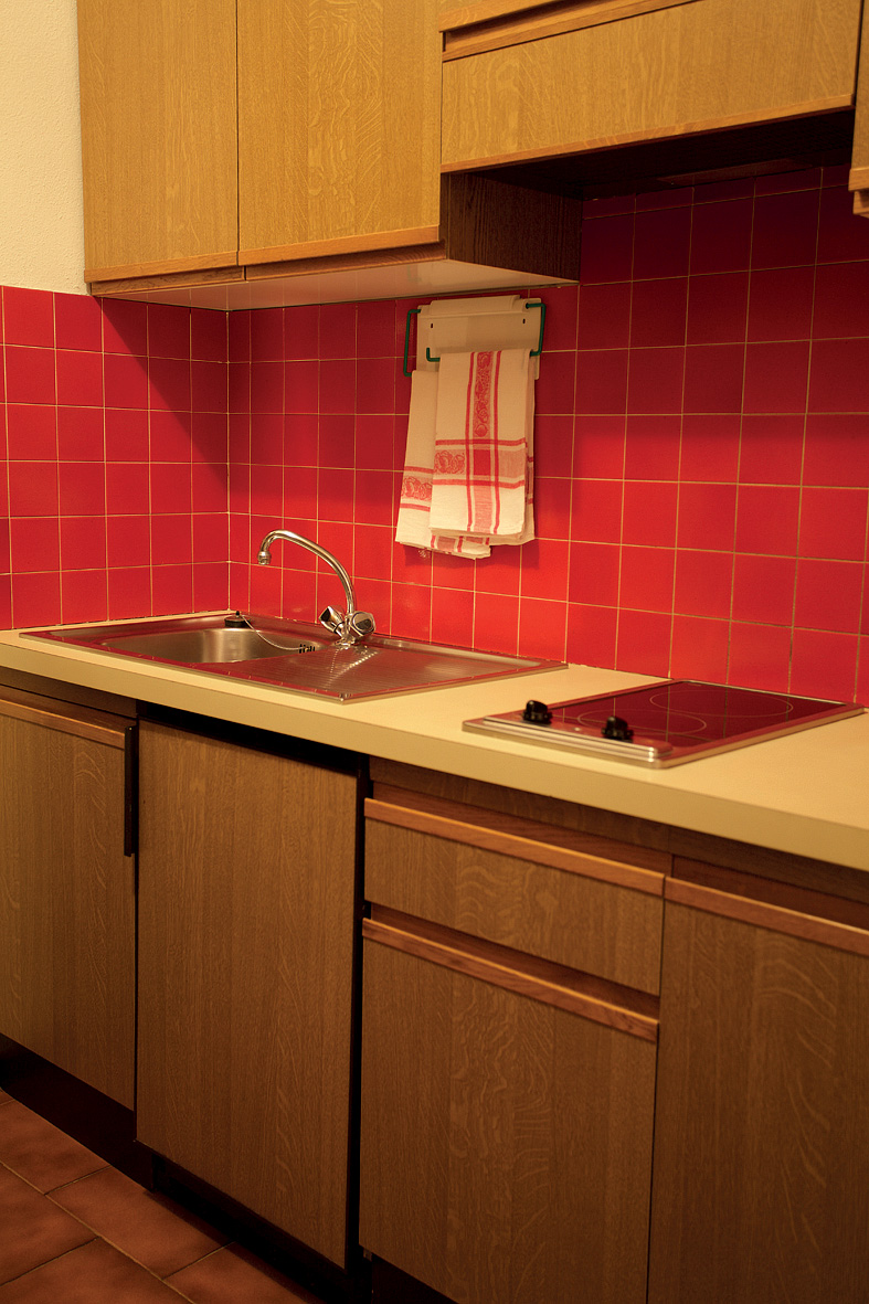 obývacia izba s kuchynským kútom, manželskou posteľou a poschodovou posteľou pre deti do nedovŕšených 11 rokov, sociálne zariadenie so sprchou či vaňou, balkón; apartmán po čiastočnej rekonštrukcii