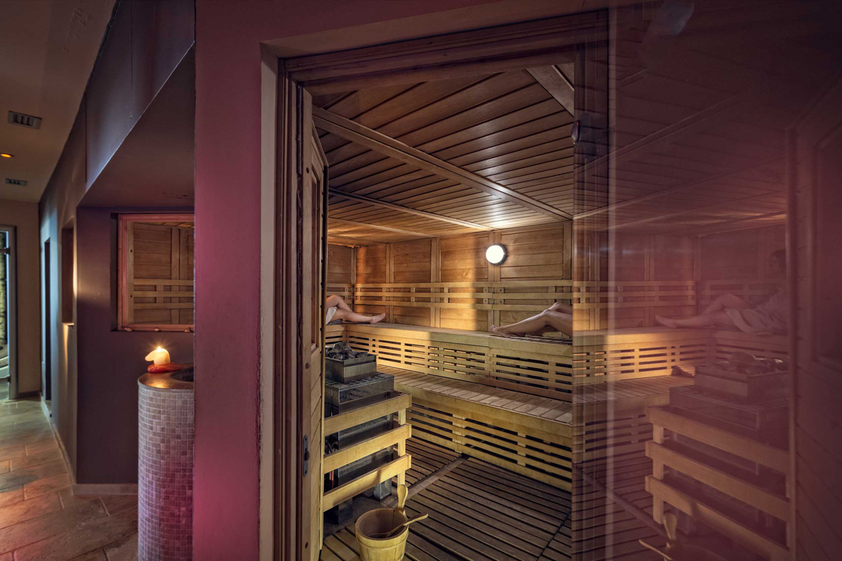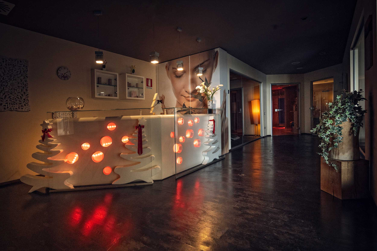 šport a relaxácia - bazén 11 x 7 m s detským bazénikom, vírivkou pre 2 osoby, umelým vodopádom a lehátkami, fínska aromatická sauna#, aromatická para#, ľadový kúpeľ#, multifunkčná sprcha#, Kneippov chodník#, masáže*, kozmetické služby*; služby označené # nemôžu využívať deti do 16 rokov, bazén je deťom prístupný od 10.00 do 18.00 v sprievode rodičov