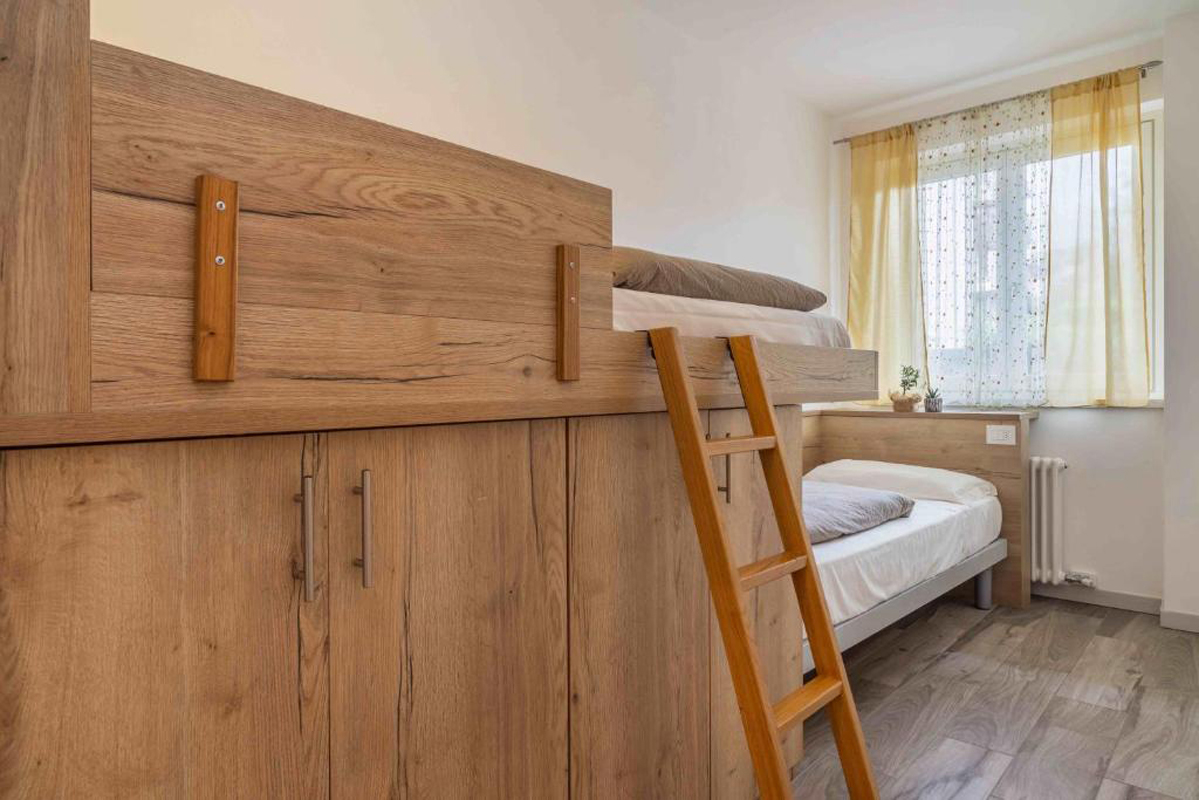 60 m² - 1 spálňa s manželskou posteľou s oddeliteľnými lôžkami, spálňa s poschodovou posteľou, obývacia izba s kuchynským kútom a rozkladacím gaučom pre 2 osoby, sociálne zariadenie, francúzske okno