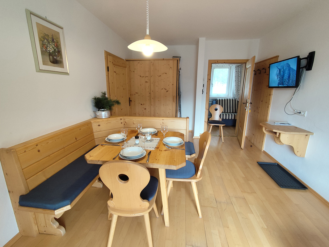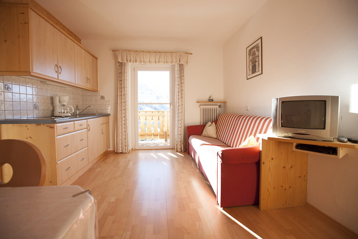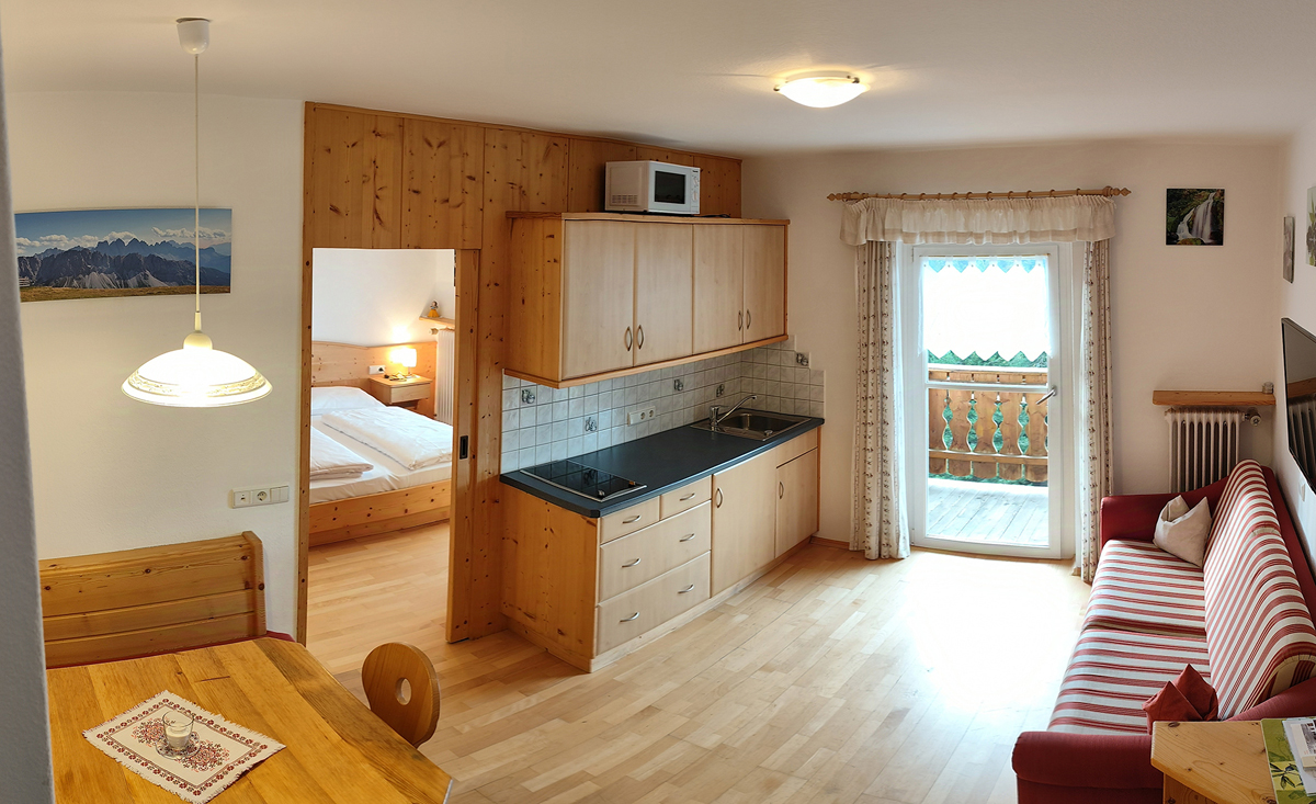 bilo Bergblick 2/3/4 B - spálňa s manželskou posteľou, obývacia izba s rozkladacím gaučom pre 2 osoby a kuchynským kútom, sociálne zariadenie so sprchou, balkón