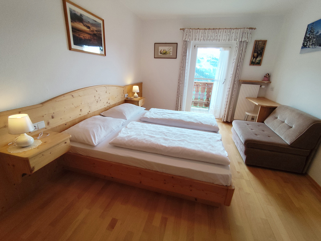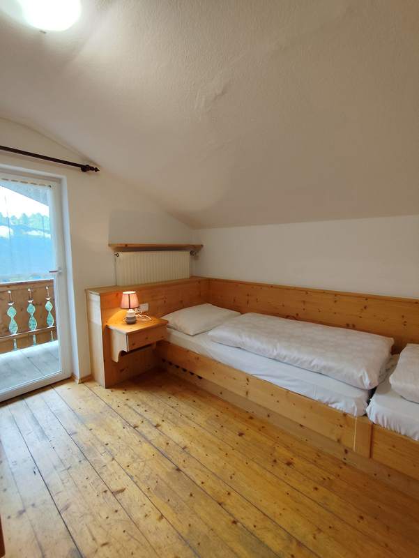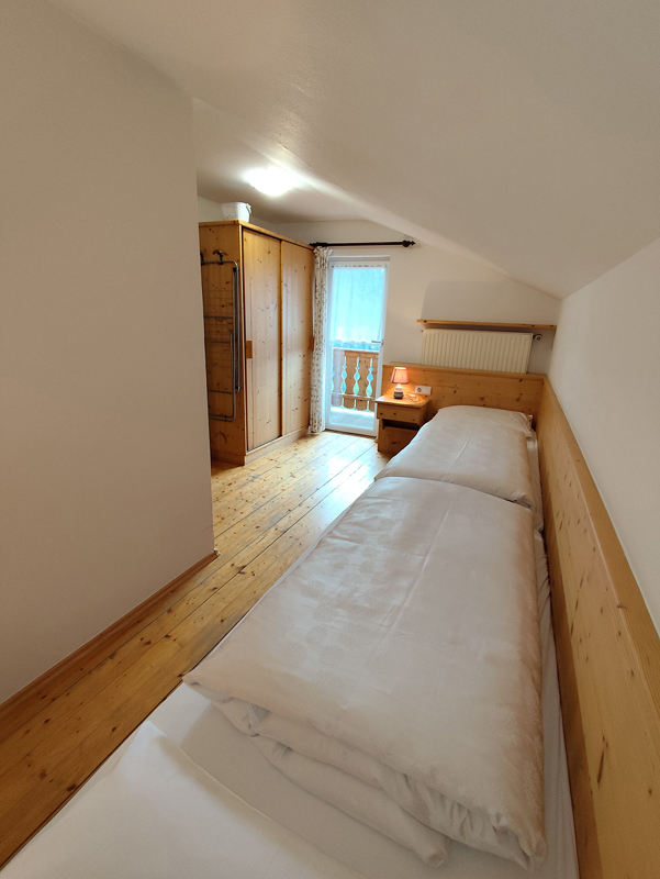 bilo Bergblick 2/3 A - spálňa s manželskou posteľou, obývacia izba s rozkladacím gaučom pre jednu osobu a kuchynským kútom, sociálne zariadenie so sprchou, balkón