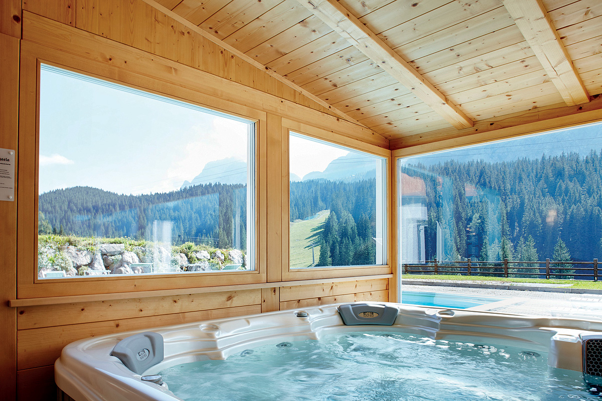 vírivka* až pre 8 osôb, 2× shiatsu vírivka#* pre 1 osobu, fínska sauna#*, vonkajšia sibírska sauna s ľadovou ochladzovacou cestičkou#*, para#*, hydromasážna sprcha#*, relaxačný kútik#* s ležadlami, malá posilňovňa#*, kozmetické služby či masáže*; služby označené # môžu využívať len osoby od 16 rokov