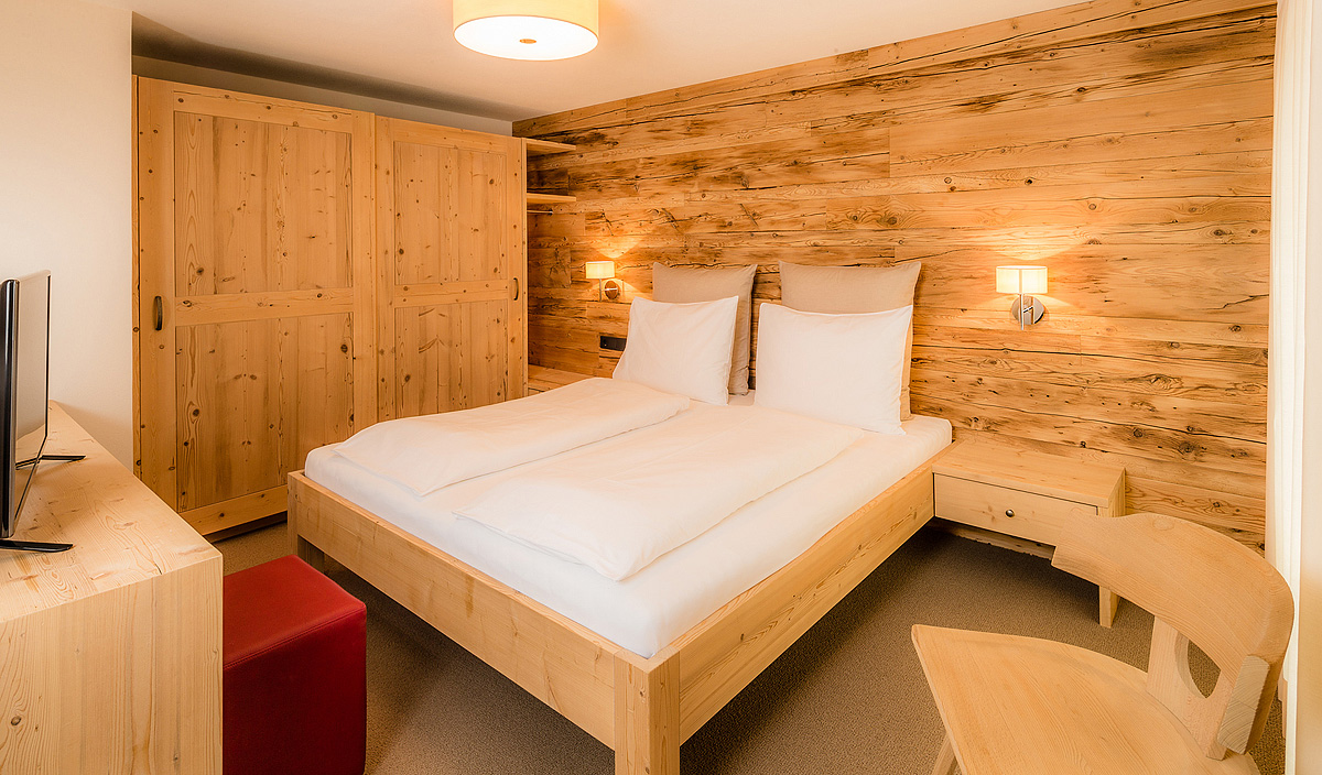 rodinný hotel v duchu južného Tirolska z prírodných materiálov a s krásnym výhľadom na hory