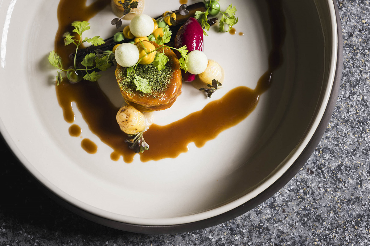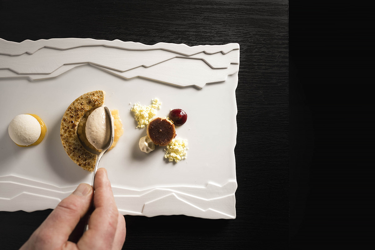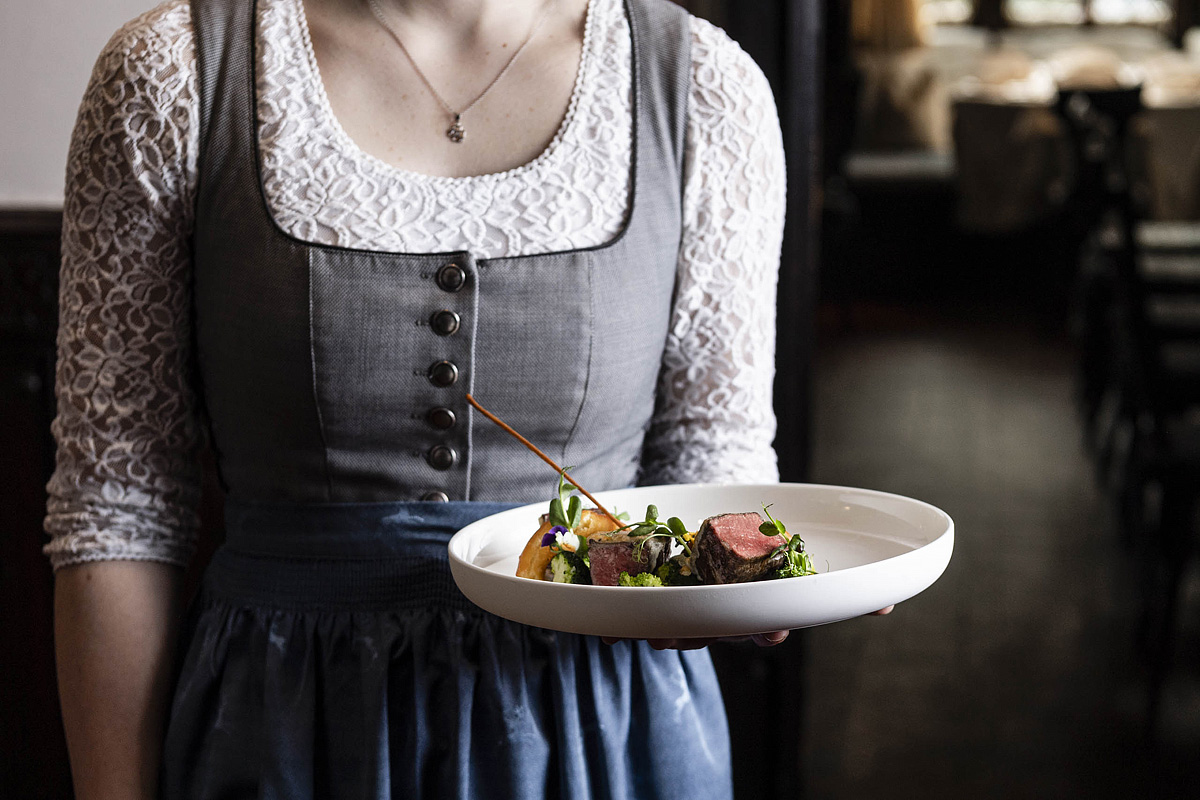 servírované menu s výberom z 2 teplých predjedál a 3 hlavných jedál s prílohou, servírovaný dezert alebo syry, šalátový bufet, nápoje za poplatok
